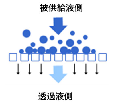 膜ろ過とは、連続した組織の間にある孔を利用して分離操作を行うものである。対象物質の大きさとろ過の駆動力によって、MF(精密ろ過)膜、NF(ナノろ過)、UF(限外ろ過)膜、イオン交換膜、RO(逆浸透)膜などに分類される。